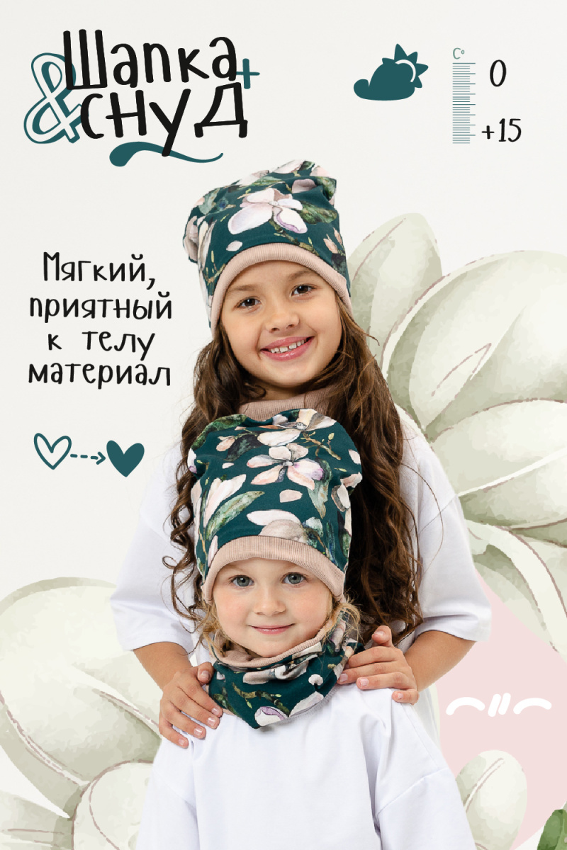 Комплект для девочек: шапка + шарф-снуд в детской в стильной расцветке.